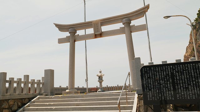 越前海岸沿い、海と岩場に囲まれた場所にある参拝スポットです。