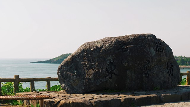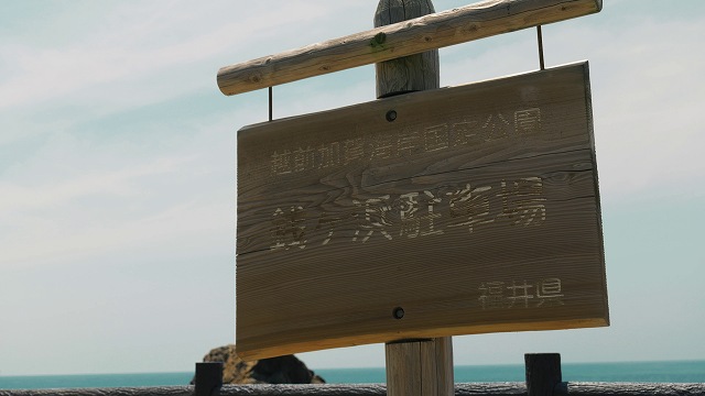 車を降りて海の方へ歩くと、目の前には岩肌が続く日本海の景色。
