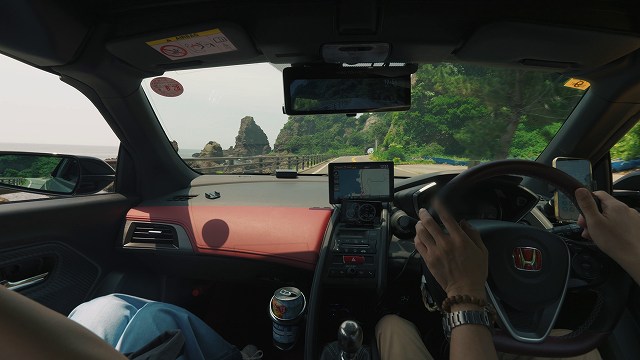 しばらく進むと、本格的な海岸線の道に入り、左手には日本海の景色が一気に広がります。
